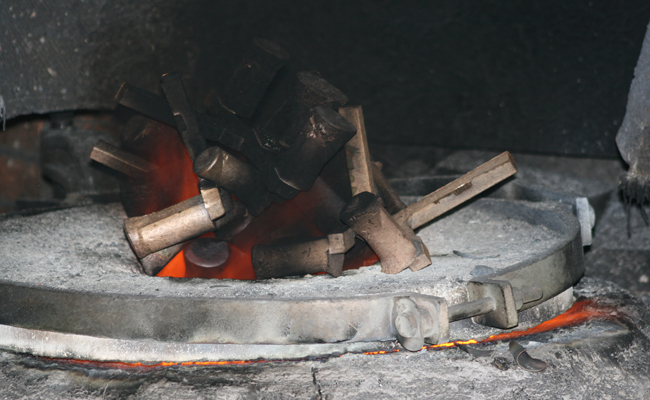 In der Schmelzerei stehen zum Schmelzen der Schwermetalllegierungen